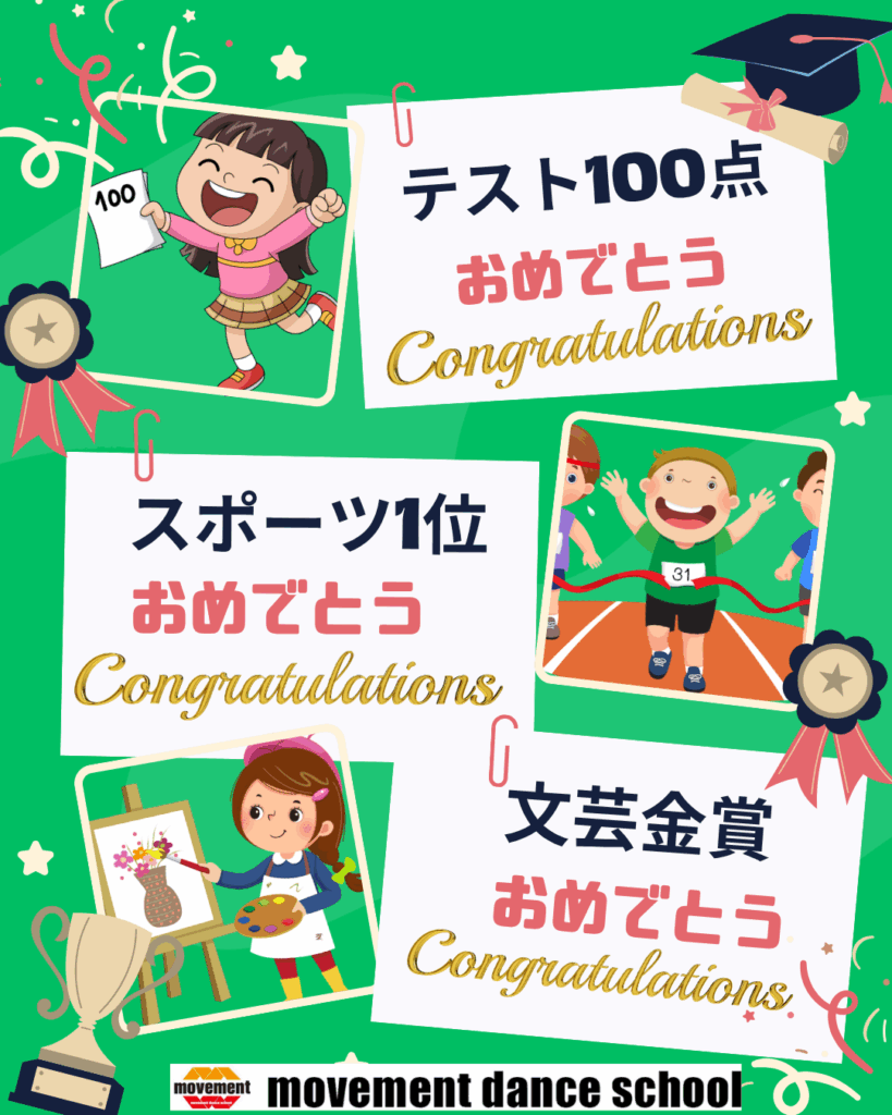 movement では、お子様のダンス以外の誇れる賞をスタッフ一同 応援しております。