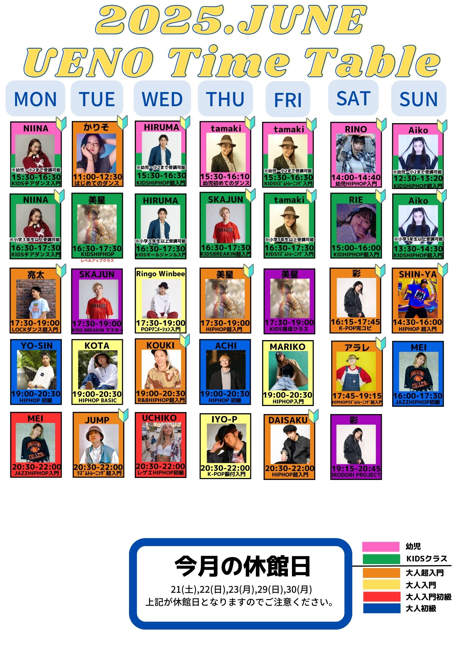 各曜日レッスンスケジュール